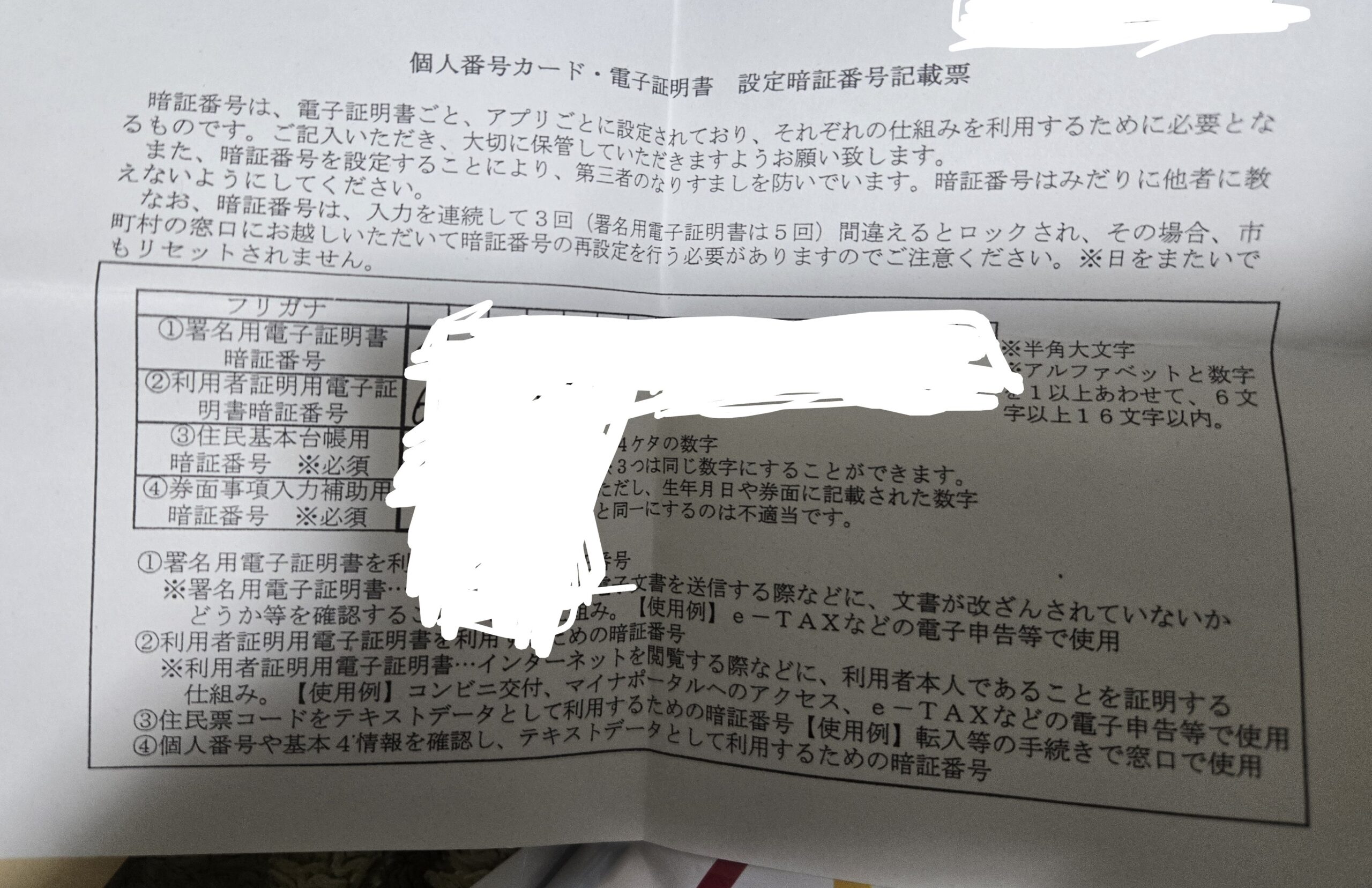 あった。ありましたよ!!10年前の自分が、あるいは数年前の自分が残した「設定暗証番号記載票」が!