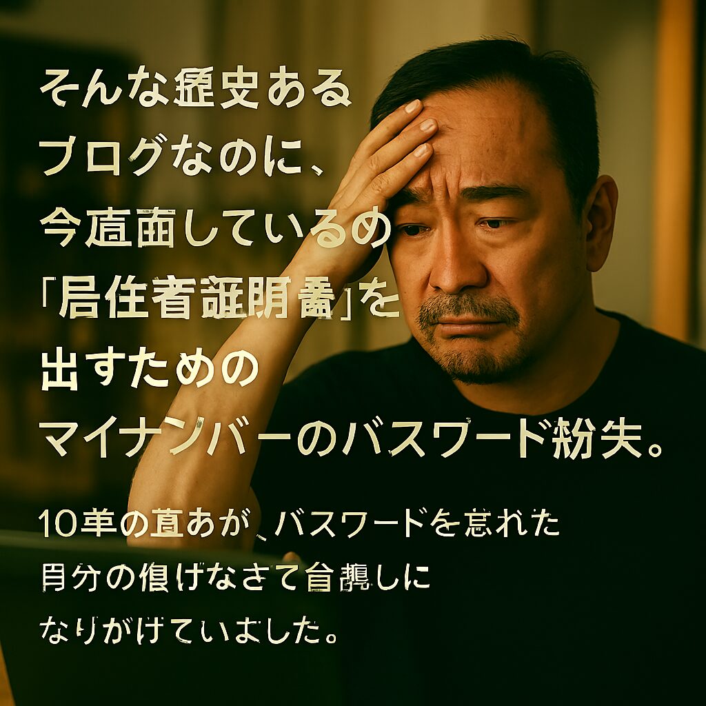 そんな歴史あるブログなのに、今俺が直面しているのは「居住者証明書」を出すためのマイナンバーのパスワード紛失。
